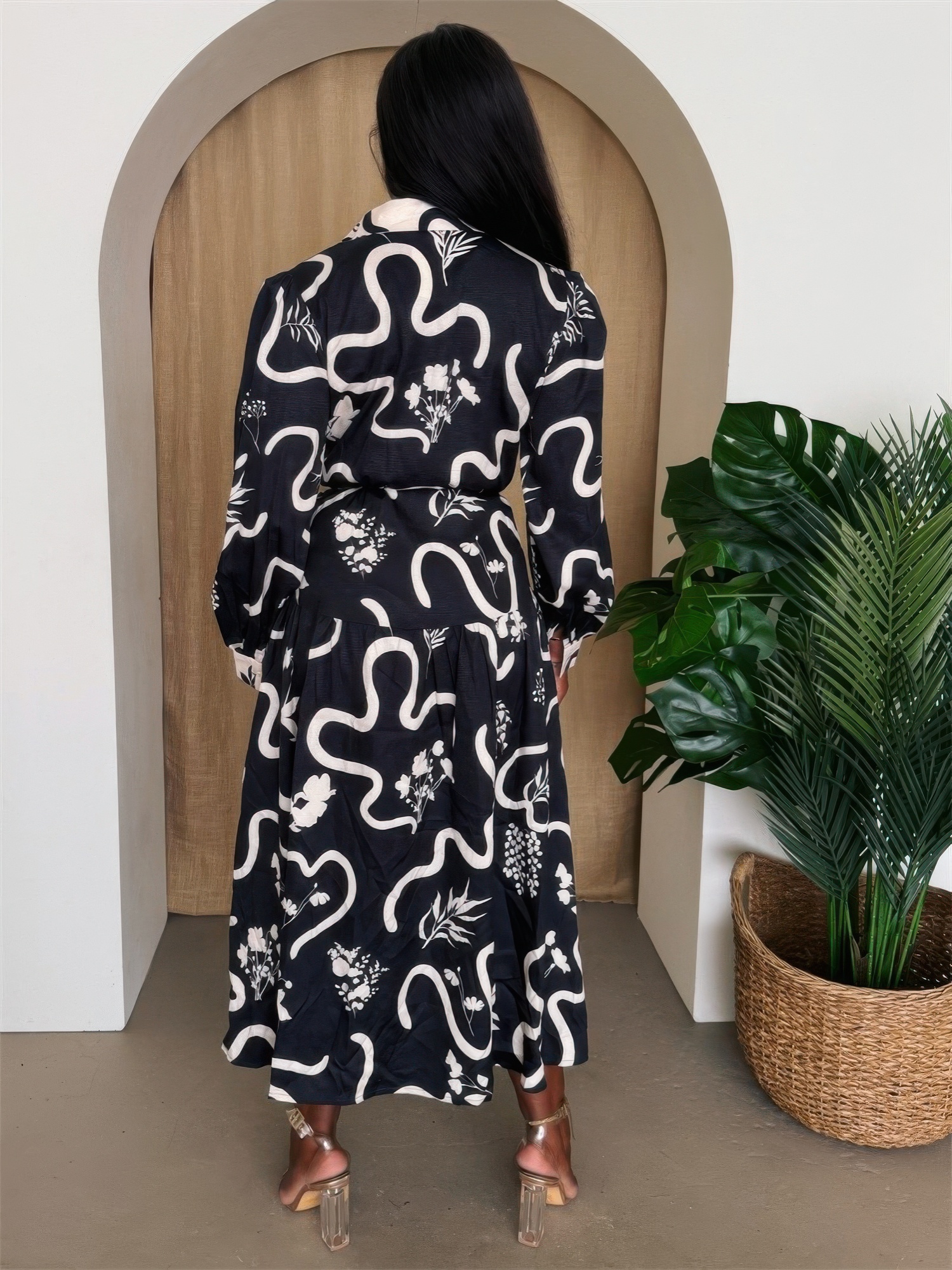 Classic shirt dress silhouette with button-down front
