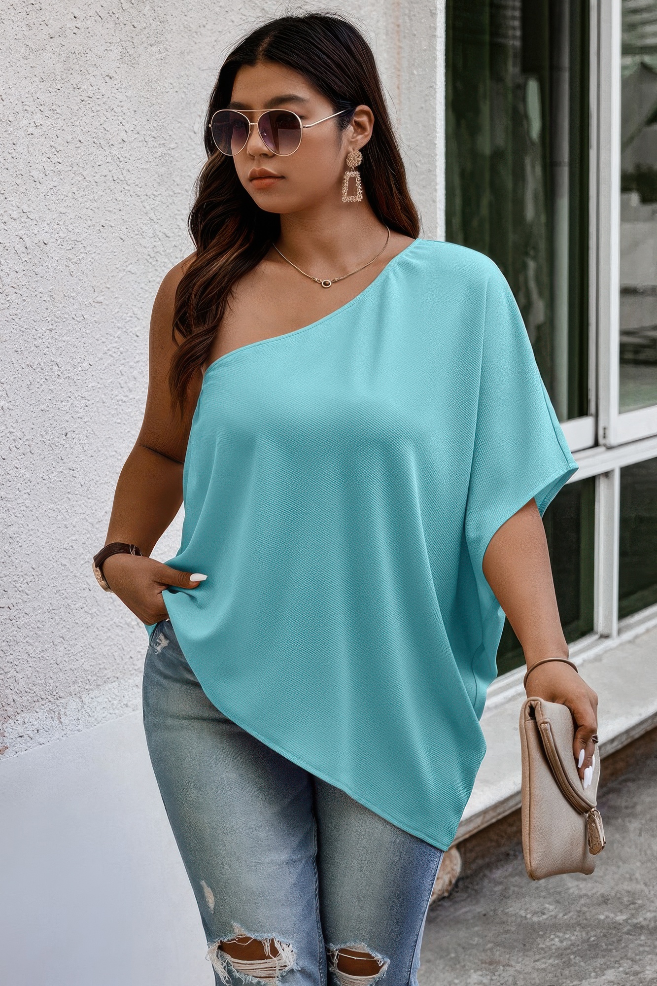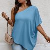 Stylish and easy to wear, this plus-size one-shoulder shirt offers a modern take on casual dressing. Crafted from a soft, stretchy blend of polyester and elastane, it delivers all-day comfort with a flattering drape. The one-shoulder design adds a bold, contemporary edge, while the loose fit keeps the silhouette relaxed and breezy. Perfect for layering or wearing on its own, this solid top is a versatile choice for everything from weekend outings to vacation days.