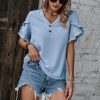 Feminine and easy to wear, this ruffle V-neck tunic shirt adds a graceful touch to your everyday wardrobe. Crafted from 100% polyester, it offers a lightweight feel and a smooth drape for all-day comfort. The short sleeves and ruffle detailing enhance the classic V-neckline, creating a flattering and polished silhouette. With its solid color and versatile tunic length, this top pairs effortlessly with jeans, leggings, or skirts. Ideal for casual outings, travel, or daily wear, it’s a go-to piece that blends style with comfort.