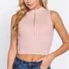 Why Choose Sleeveless Mock Neck with Zipper Detail Rib Sweater Knit Top?