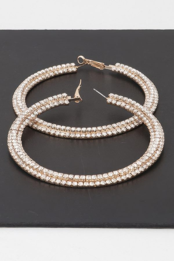 Make a statement with these triple jeweled flat hoop earrings. Designed with oversized hoops and encrusted detailing, they add just the right touch of glam. Whether paired with sleek eveningwear or dressed-down denim, they deliver eye-catching sparkle with elevated edge.